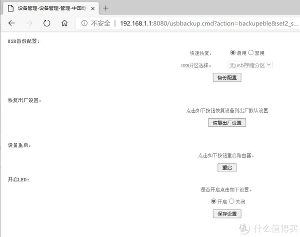 备份配置的按钮可能是灰色的,把快速恢复选择禁用,备份配置就可用了。