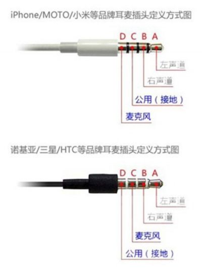 不同品牌手机耳机定义
