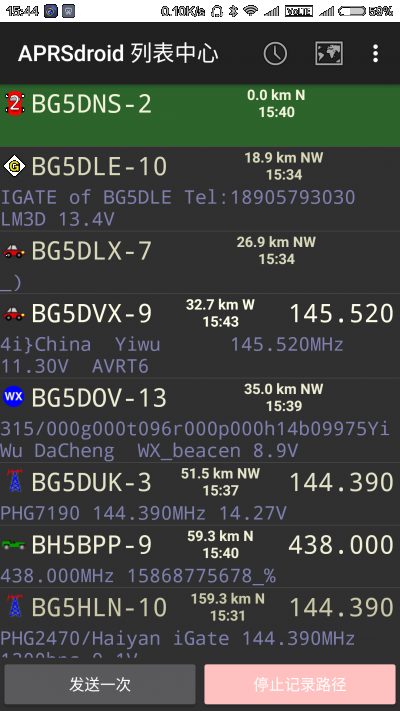 备注:手机开着GPS和APRS,屏幕亮着,数据一直传输,手机比较烫,比较费电,记得及时充电哈。