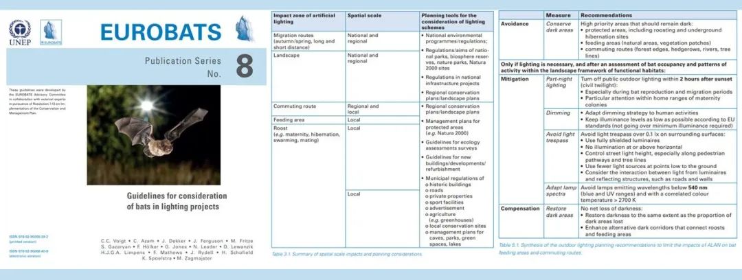 比如户外照明使用更多灯光向下照射的、有利于保持天空黑暗的灯具;比如对夜景照明安装定时器或调光器、甚至是更换感应灯;再比如使用色温在3000K及以下的照明,降低蓝光对动物的影响……