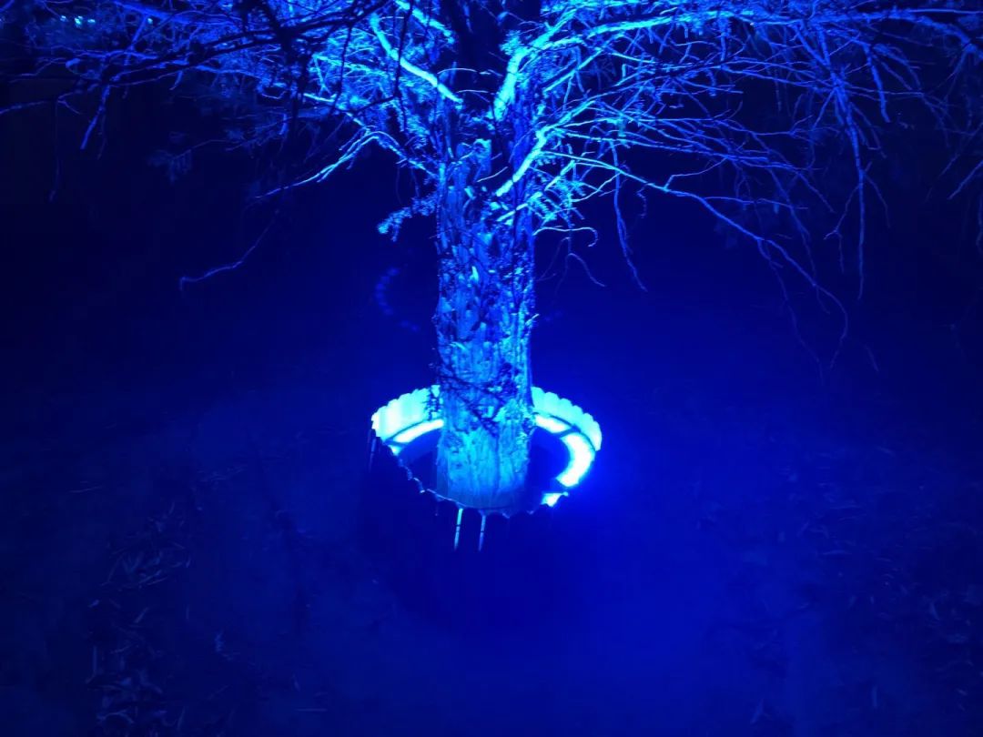 长耳鸮站过的树,树下一圈灯光