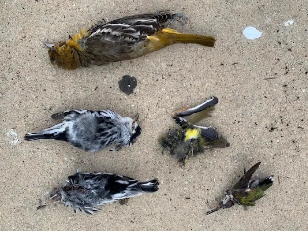 达拉斯市中心采集到类因受到光污染而迷失方向,死于与建筑物相撞的鸟。