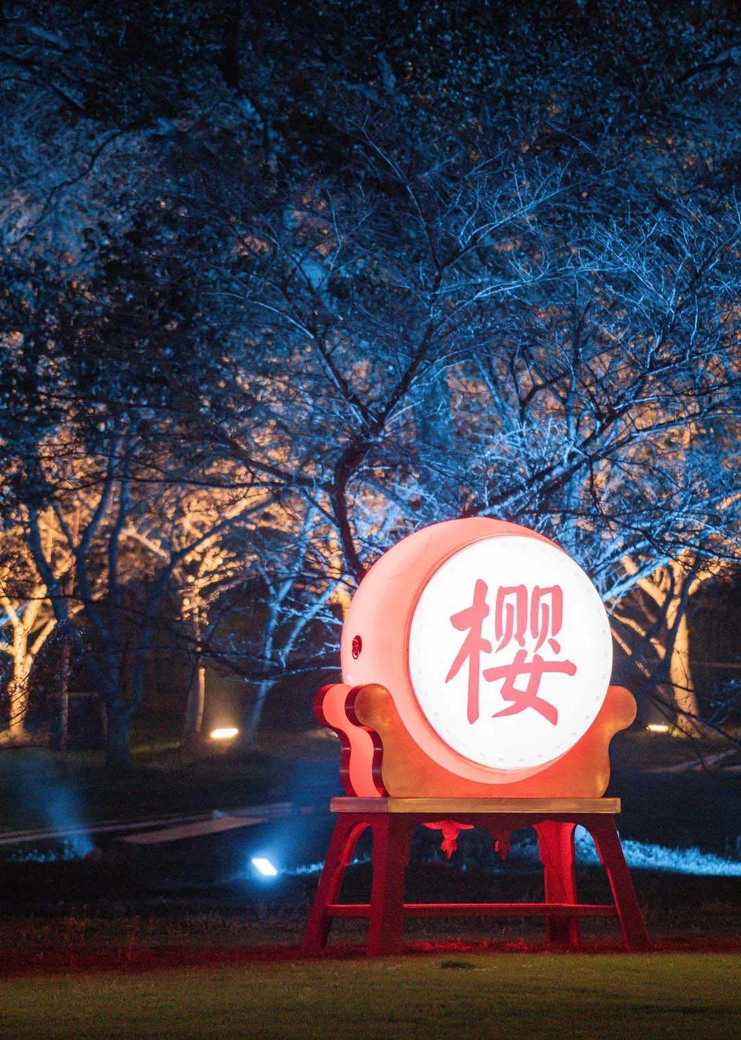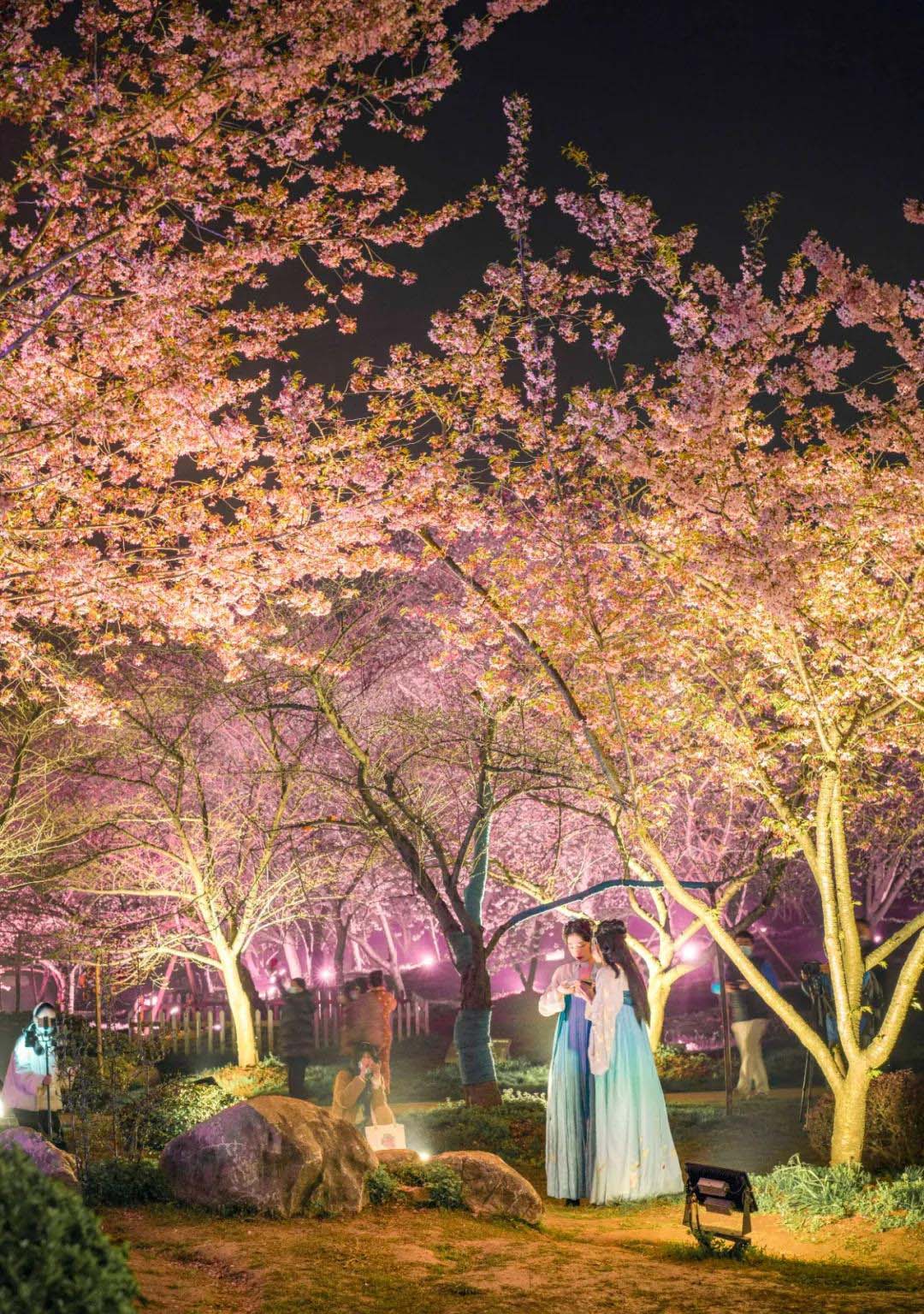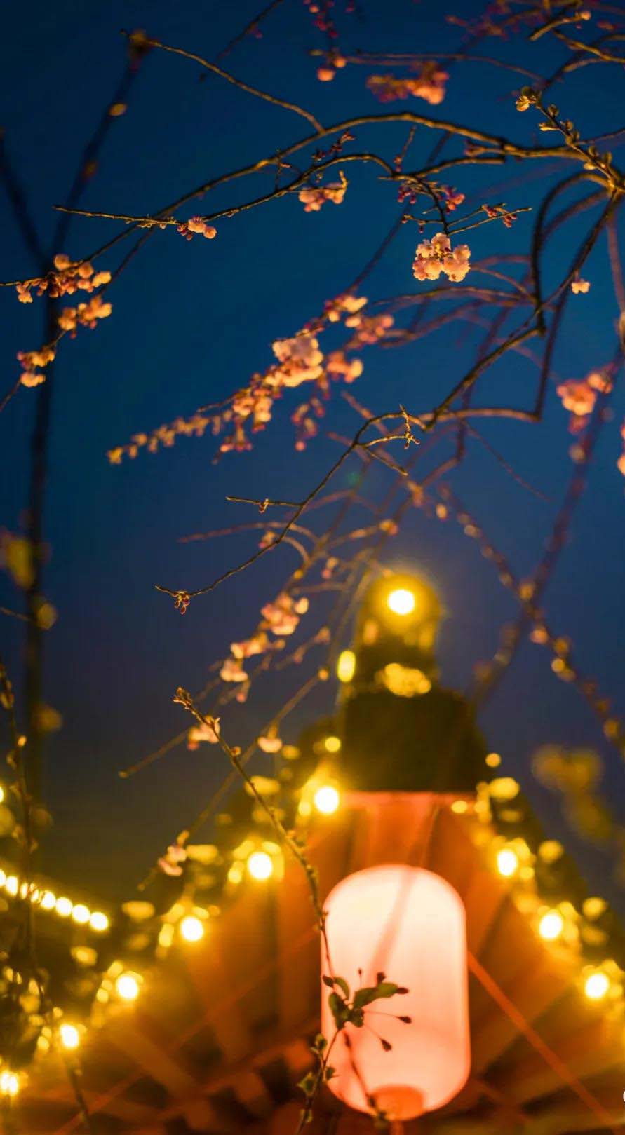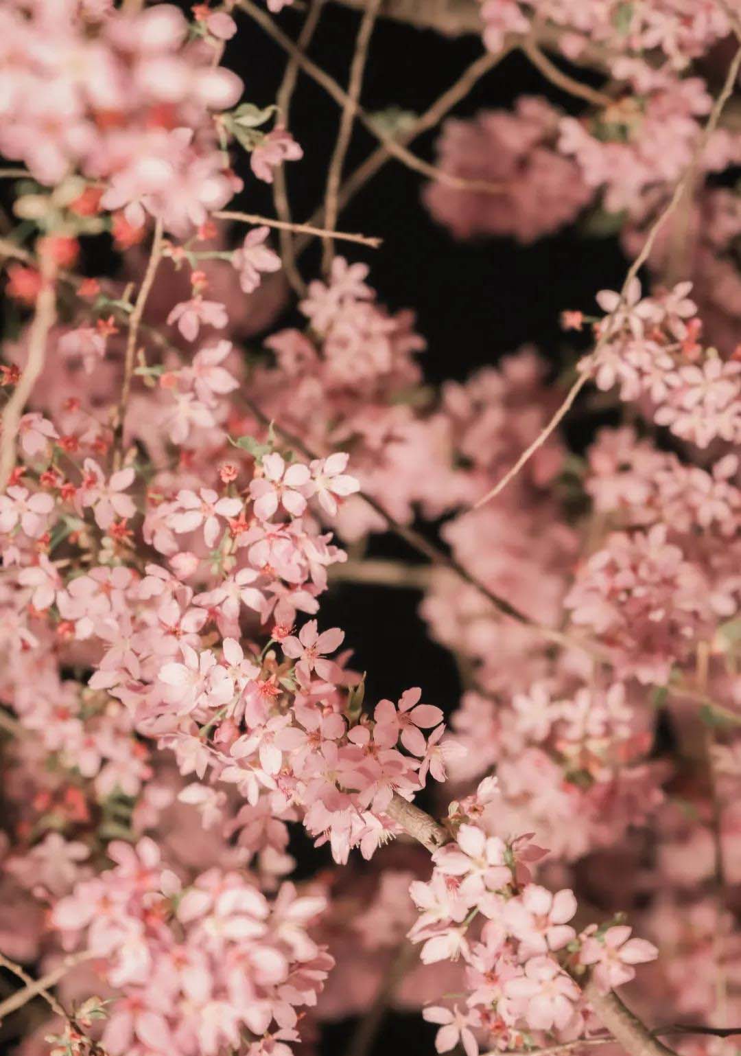 灯下赏樱,月下漫步,别有一番滋味。